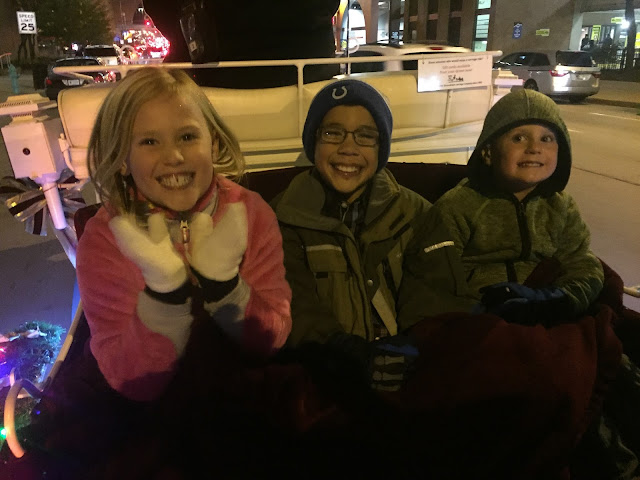 The rest of our time at home was spent celebrating Hank's birthday and going downtown with my mom for a carriage ride. We have made this an annual tradition every Thanksgiving weekend. Ruth's Chris for dinner and a carriage ride around the circle is the best way to kick of the Christmas season!