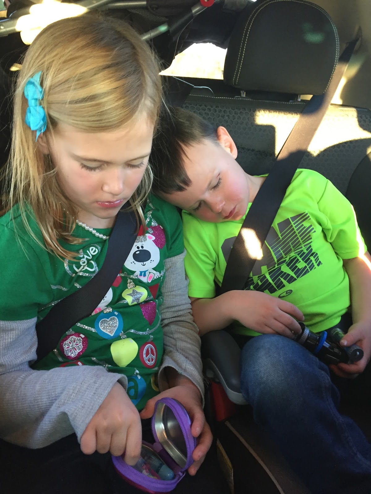 We left Christmas Day at noon for Panama City Beach. After opening presents, we told each kid they could grab one toy and we headed for the airport. The morning didn't seem too rushed (as we had done a lot of prepping the day prior) and the kids had gotten up a little extra early since it was Christmas morning and all. Based on the below pictures of the only napping child, can you tell which one woke up first???